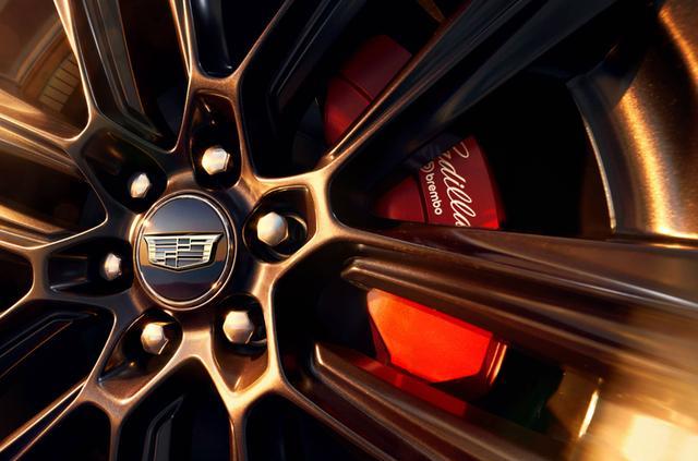 新车侧面线条颇为硬朗,门把手与凯迪拉克IQ锐歌一样采用了隐藏式布局,车辆的D柱采用了与车身同色设计,其他的则经过了熏黑处理,外后视镜同样经过了黑化,搭配熏黑的轮毂显得较为时尚。车辆将拥有295mm的轮胎宽度,匹配有Brembo高性能六活塞制动卡钳。