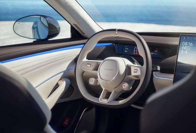 内饰方面也迎来了升级,方向盘换装了小米YU7同款造型,液晶仪表盘和悬浮式中控屏都得到了保留,操作台部分的造型有所优化,实体按键不再是分开布局,而是变成了并列的长条状布局。